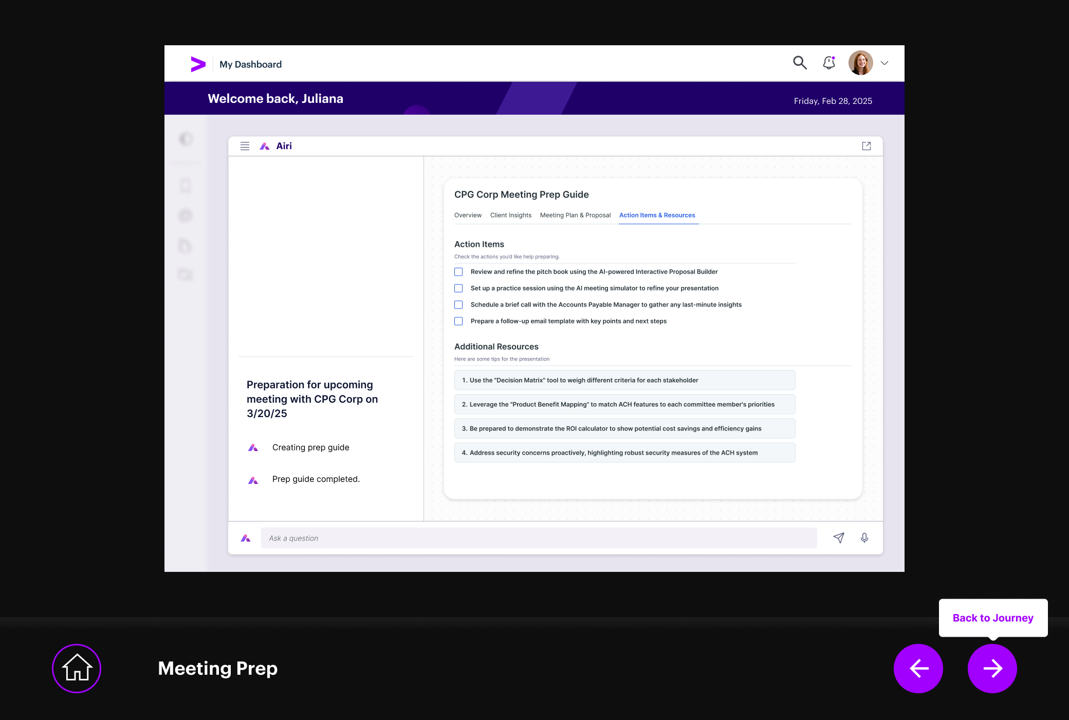 Every L2 step also links to a live demo. The meeting prep screens in the next section are those demos — each one built to bring a specific annotation to life, not as a concept, but as a working interaction.