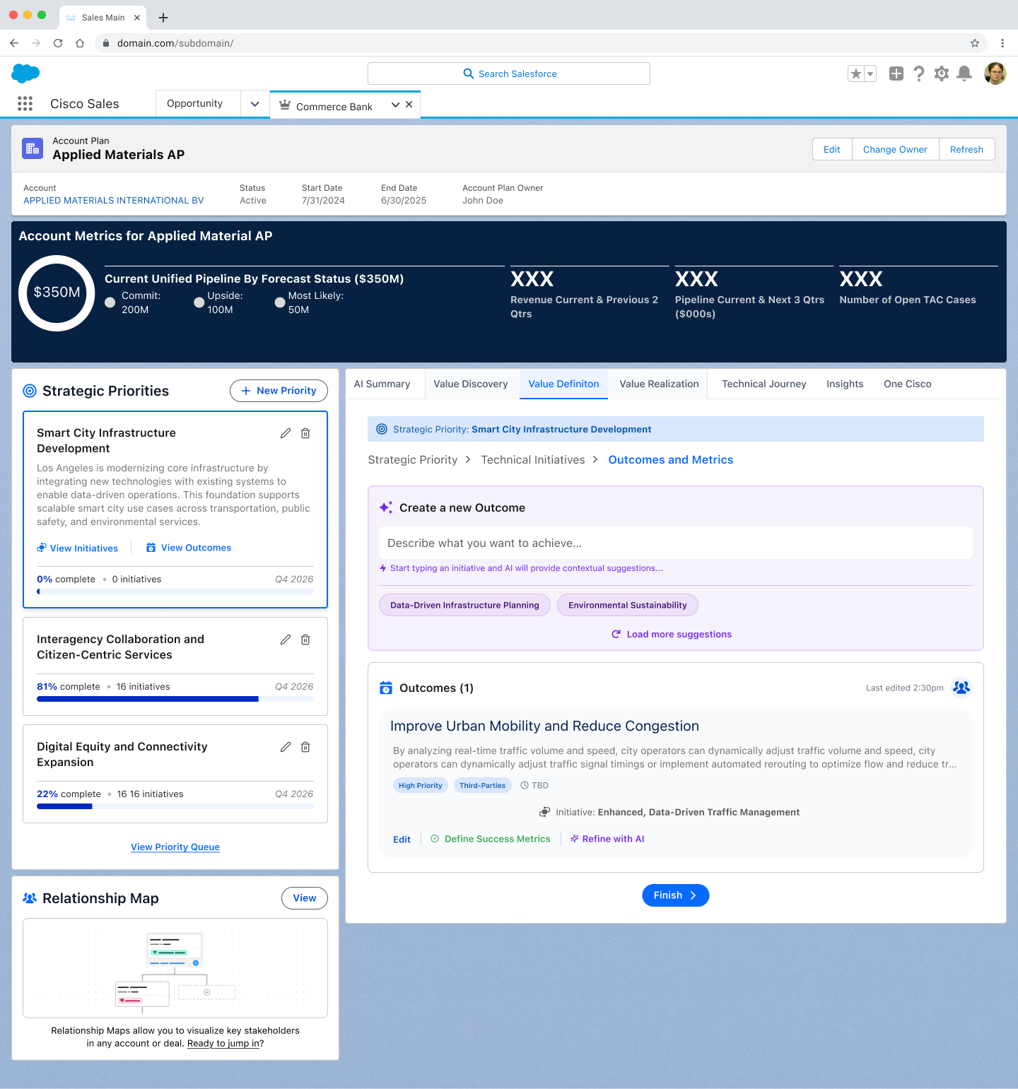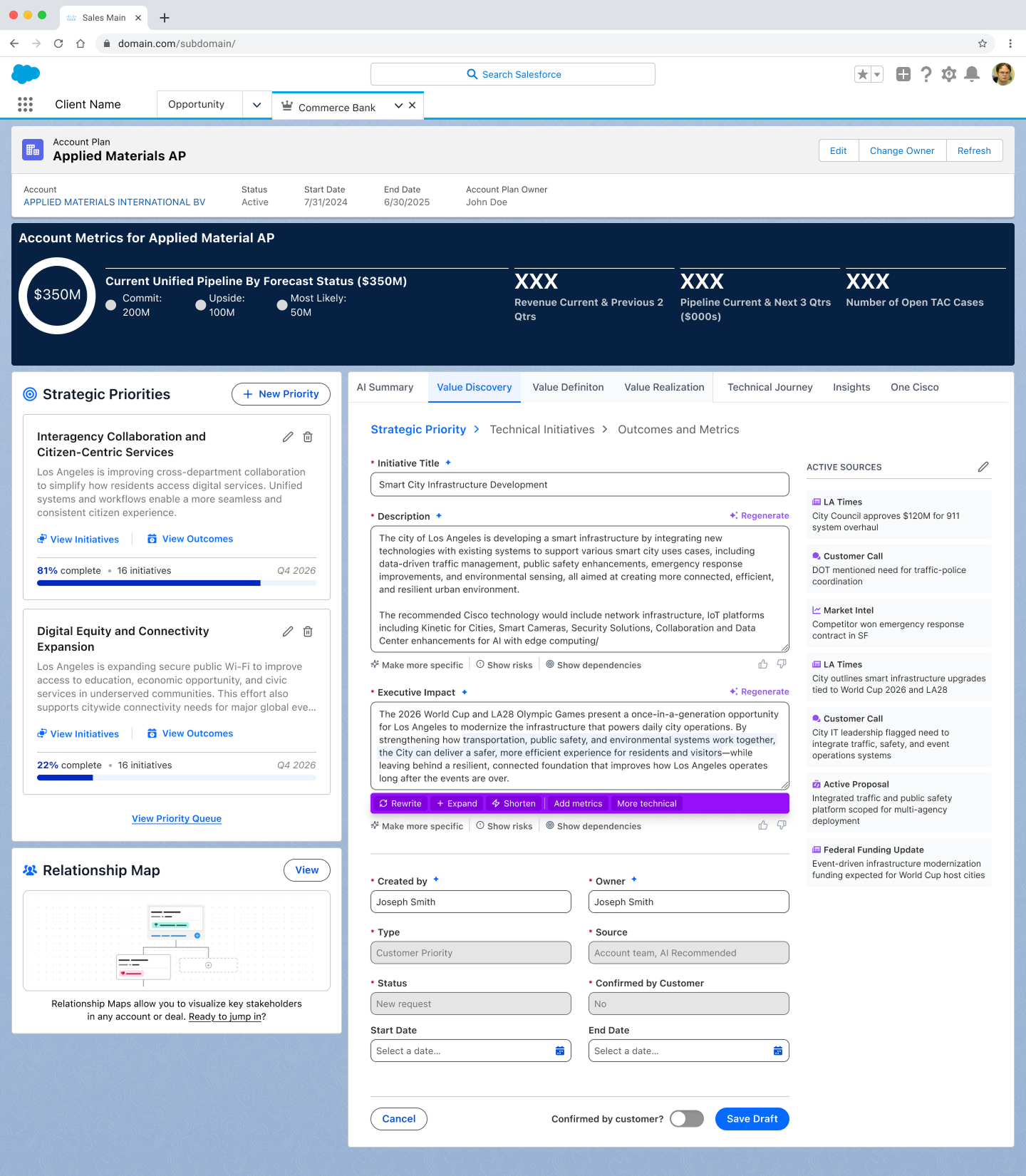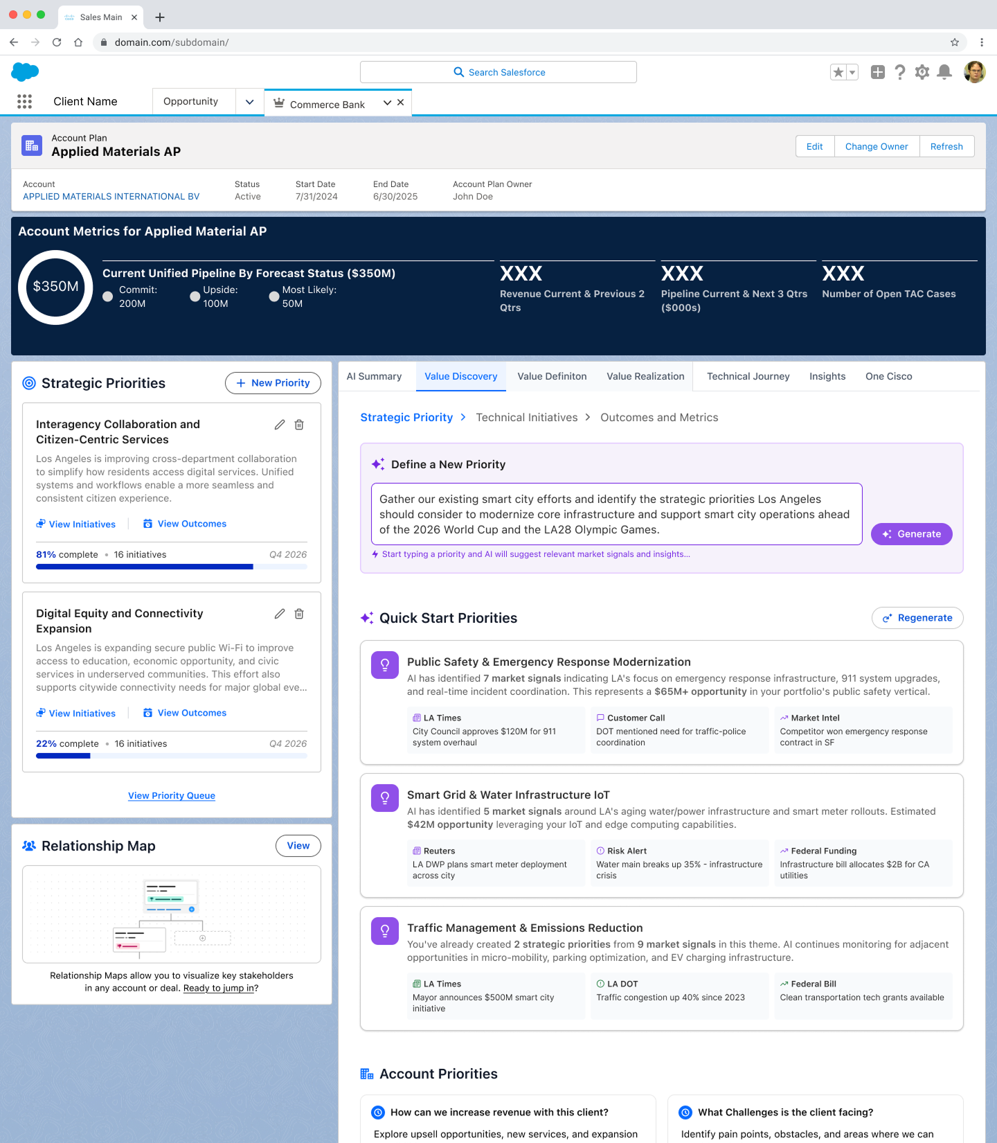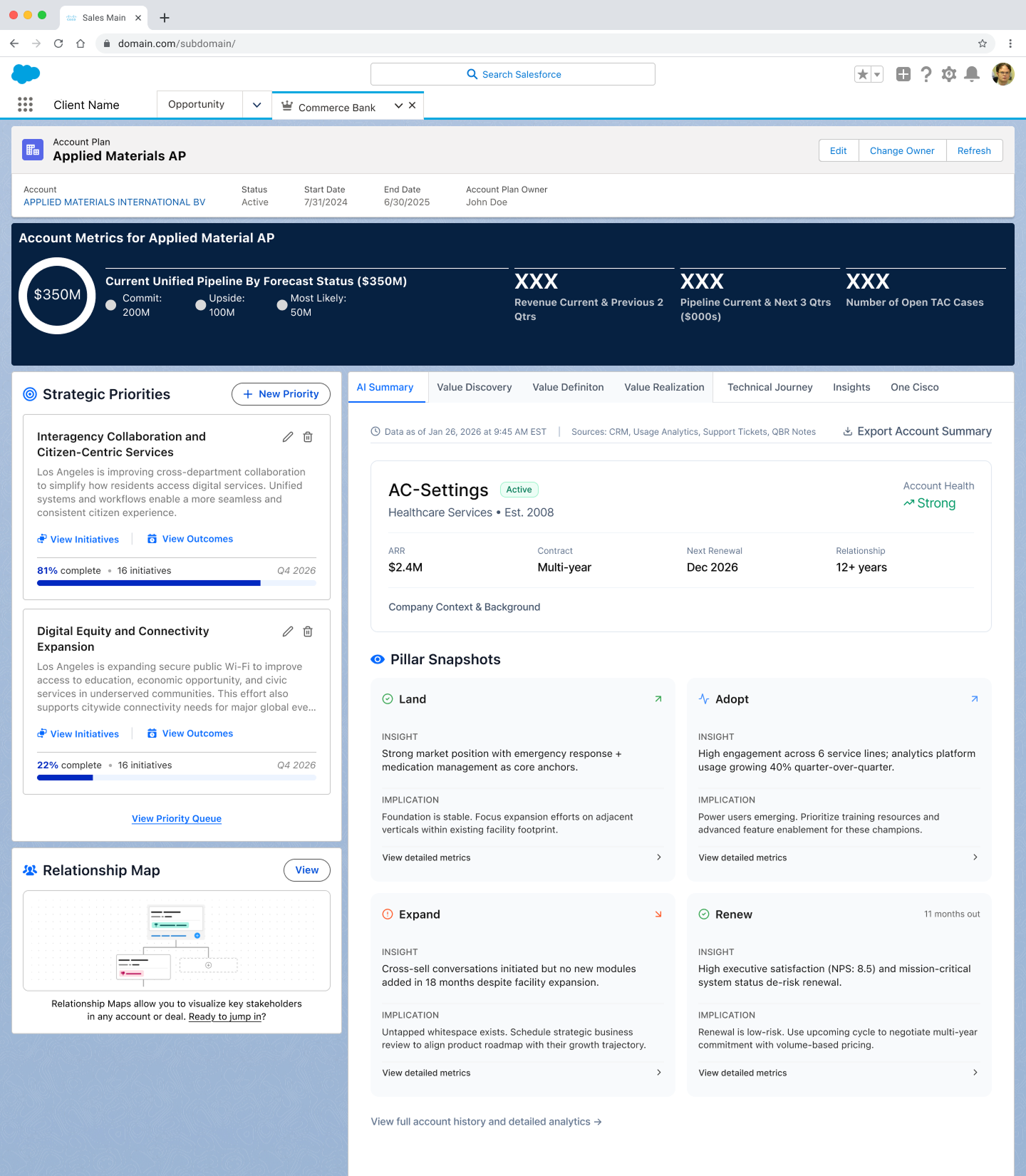 The Unified Account Plan connected the entire CRM into a single structured experience. An account executive with no prior knowledge of an account could open it and immediately understand where they are, what matters, and what to do next. AI is embedded at every layer, not as a feature added on, but as the thing that makes the experience work at all.